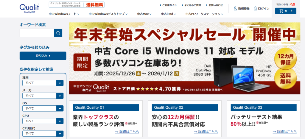 【PR】Qualit 安く品質の良い中古パソコンのご紹介です!レンタル満了後のパソコンがきれいに清掃・厳しく検査されているので、「どこに傷があるかわからない」「新品と変わらない」と、購入した人から評価もされています。掘り出し物が多くあるので、欲しかったパソコンが安く手に入るかもしれませんよ。◇こんな人におすすめ◇・コスパを重視する人・最新型にこだわりがない人・初めてパソコンを買おうと考えている人・安さと品質の良さ両方を重視したい人・学校で使うパソコンを探している人・仕事で使うパソコンを探している人・ゲーム用のパソコンを探している人 詳しくはここをクリック おすすめ商品 ノートパソコン価格33,000円(税込) ・中古ノートパソコン・CPU Core i5-1.6GHz(8250U)・メモリ8G・SSD256GB・Webカメラあり・15.6インチFHD(1920*1080) ノートパソコン価格31,900円(税込) ・中古ノートパソコン・CPU Core i5-1.6GHz・メモリ8G ・SSD256GB・Webカメラあり・15.6インチFHD(1920*1080) おすすめ情報 商材名 Qualit運営者 A.F※当サイトはアフィリエイトプログラムを利用し宣伝目的で作成しております。